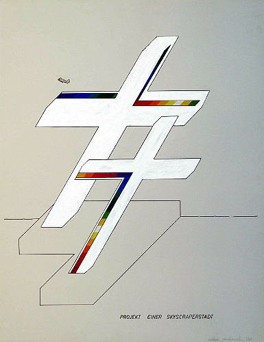 Skyscraperstadt, 1970, Kasein u. Tusche auf Karton, 70x50cm