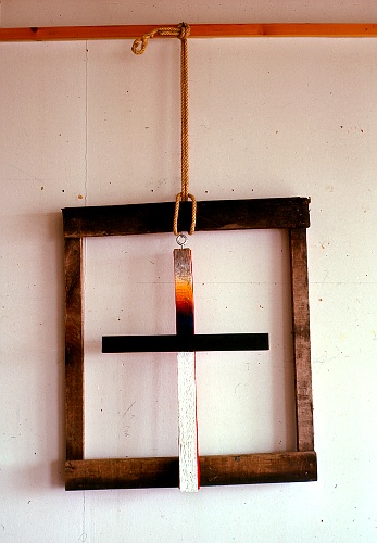 Kreuzobjekt, 1970, Acryl/Holz/Hanf, 180x100 cm
