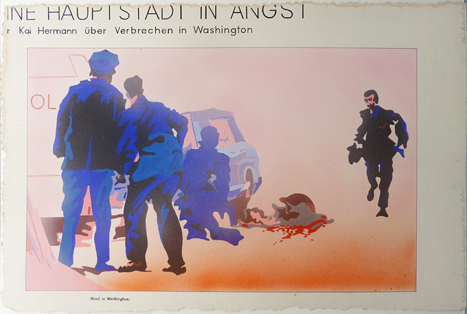Mord in Washington, 1971 Acryl auf Karton, 62x98 cm