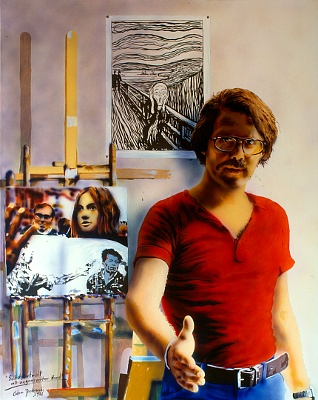 Selbstportrait mit ausgestreckter Hand, 1975, Acryl auf Leinwand, 150x120 cm