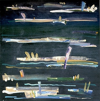 Seerosenteich, 1994, Acryl + Tesa auf Leinwand, 100x100 cm
