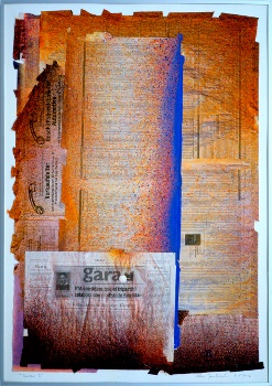 Screen 5, 2003, Acryl+Zeitung auf Karton, 100x70 cm