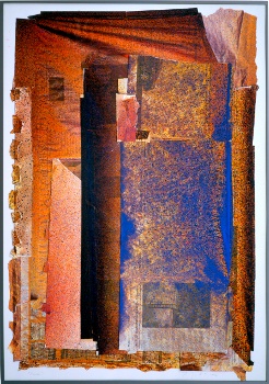 Screen 8, 2003, Acryl+Zeitung auf Karton, 100x70 cm
