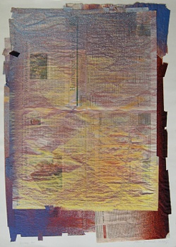 Screen 5, 2007, Acryl+Zeitung auf Leinwand, 100x70 cm
