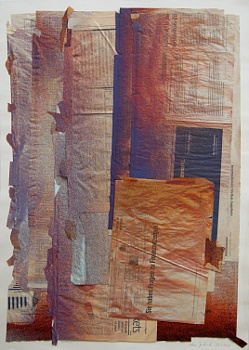 Screen 2, 2008, Acryl+Zeitung auf Leinwand, 100x70 cm