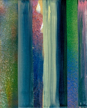 Paradiesfragment, 1997, Acryl+Tesa auf Leinwand, 30x24 cm