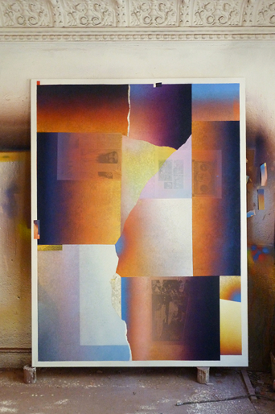 Window to the East Nr.4 / Oussama, 2018, Acryl auf Zeitung auf Leinwand, 240x180 cm