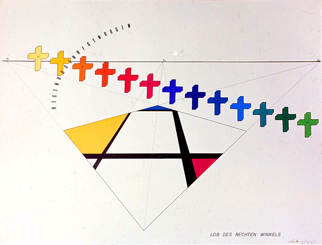 Lob des rechten-Winkels, 1971, Tempera auf Karton, 60x80cm