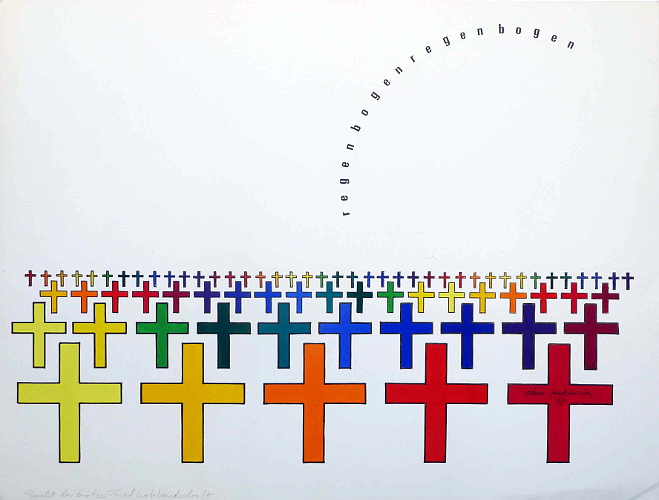 Projekt der bunten Friedhofslandschaft, 1970, Kasein u. Tusche auf Karton, 50x70cm