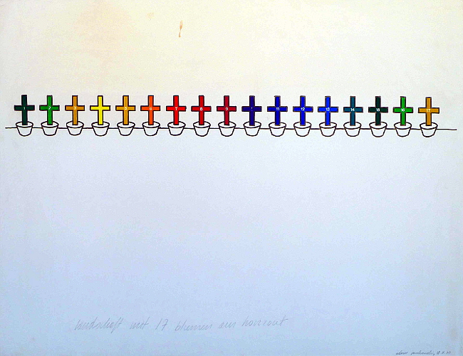 Landschaft mit Blumen, 1970, Kasein u. Tusche auf Karton, 70x50cm