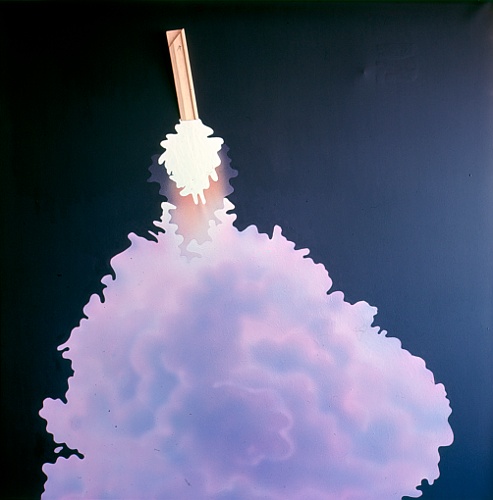 Abschuss, 1970, Acryl+Holz auf Leinwand, 130x130 cm