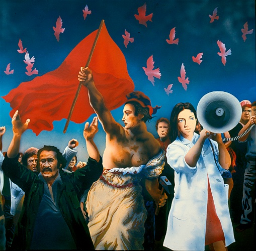 Streik, 1973, Acryl auf Leinwand, 195x195 cm, private Collection Heidelberg