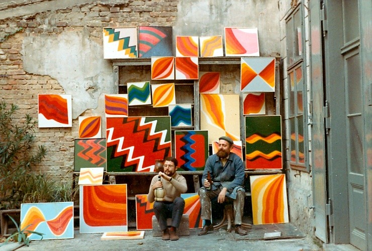 1965 mit dem Bildhauer Kurt Ingerl, Wien Favoritenstrasse 50