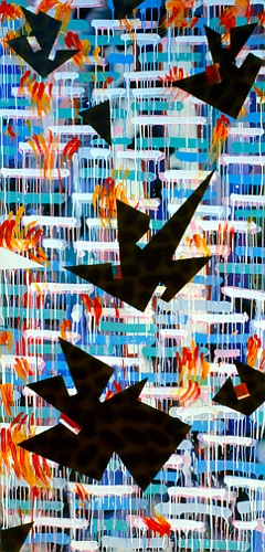 Seerosen, 1985, Acryl auf Leinwand, 195x95 cm