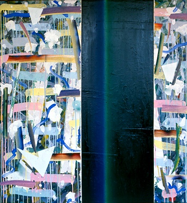 Seerosenteich, 1993, Acryl+Tesa auf Leinwand, 140x130 cm