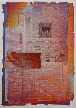 Screen 1, 2007, Acryl+Zeitung auf Leinwand, 100x70 cm