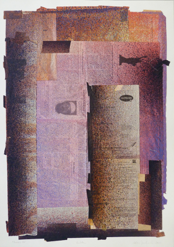 Screen 20 Sultan, 2008, Acryl+Zeitung auf Karton, 100x70 cm